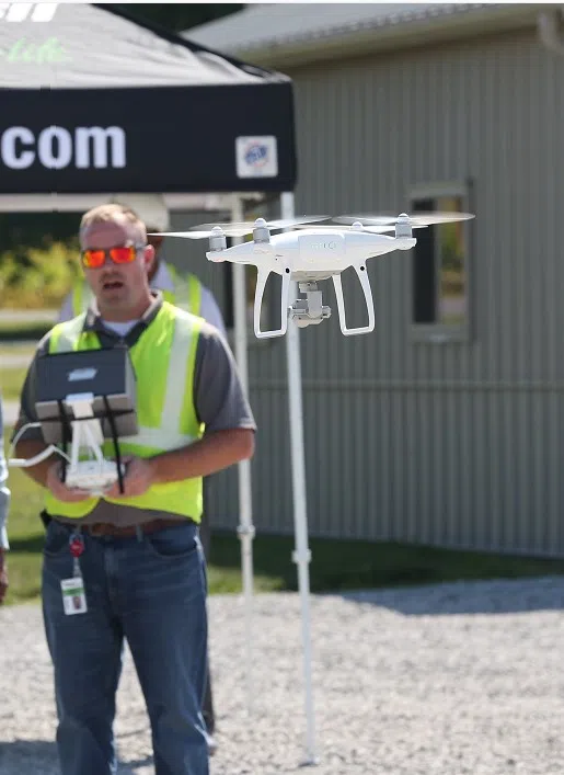 Kyle Maxwell, superintendent of Electric Programs and a licensed drone pilot for Ameren Illinois, gets ready to fly a drone at the Metro East Training Center in Belleville. Ameren reminds parents to talk with their children this summer about the dangers of overhead power lines when flying drones, climbing a tree and other outdoor activities. Photo submitted by Ameren