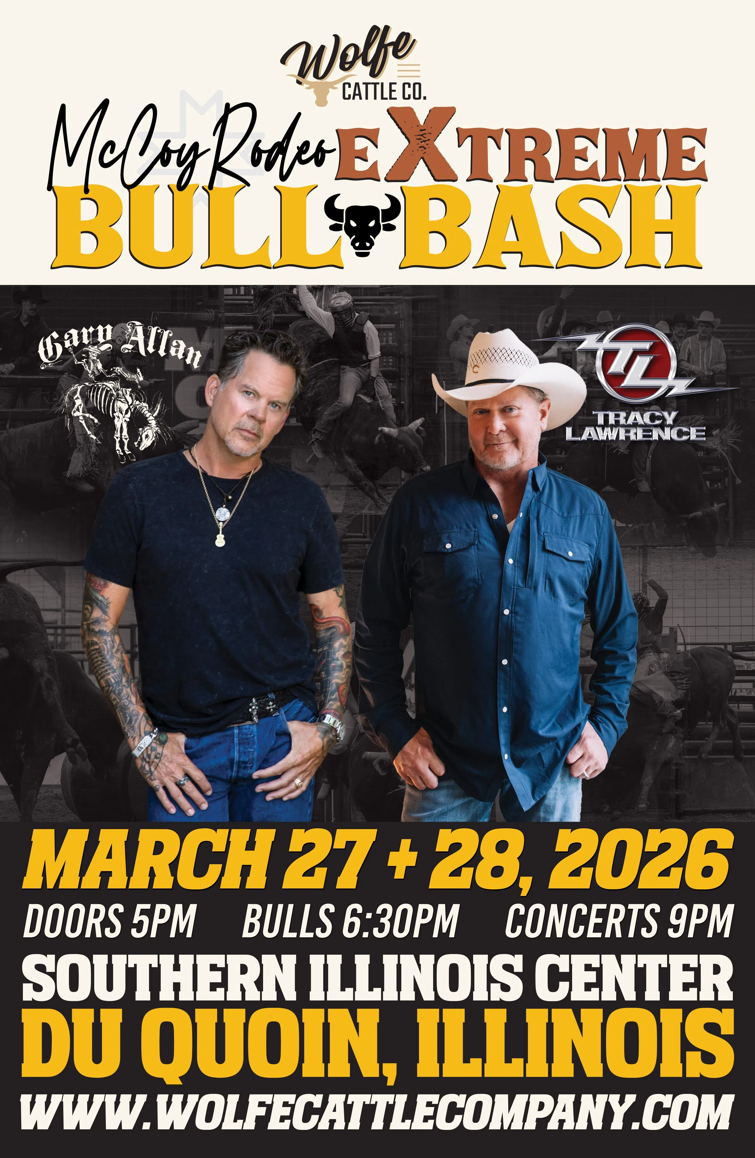 DU QUOIN, IL (OCT 28, 2025) – The Wolfe Cattle Company is thrilled to share the exciting news about McCoy Bull Bash’s Extreme Bull Bash, happening on March 27 and 28, 2026, at the Southern Illinois Center within the Du Quoin State Fairgrounds in Du Quoin, Illinois.
