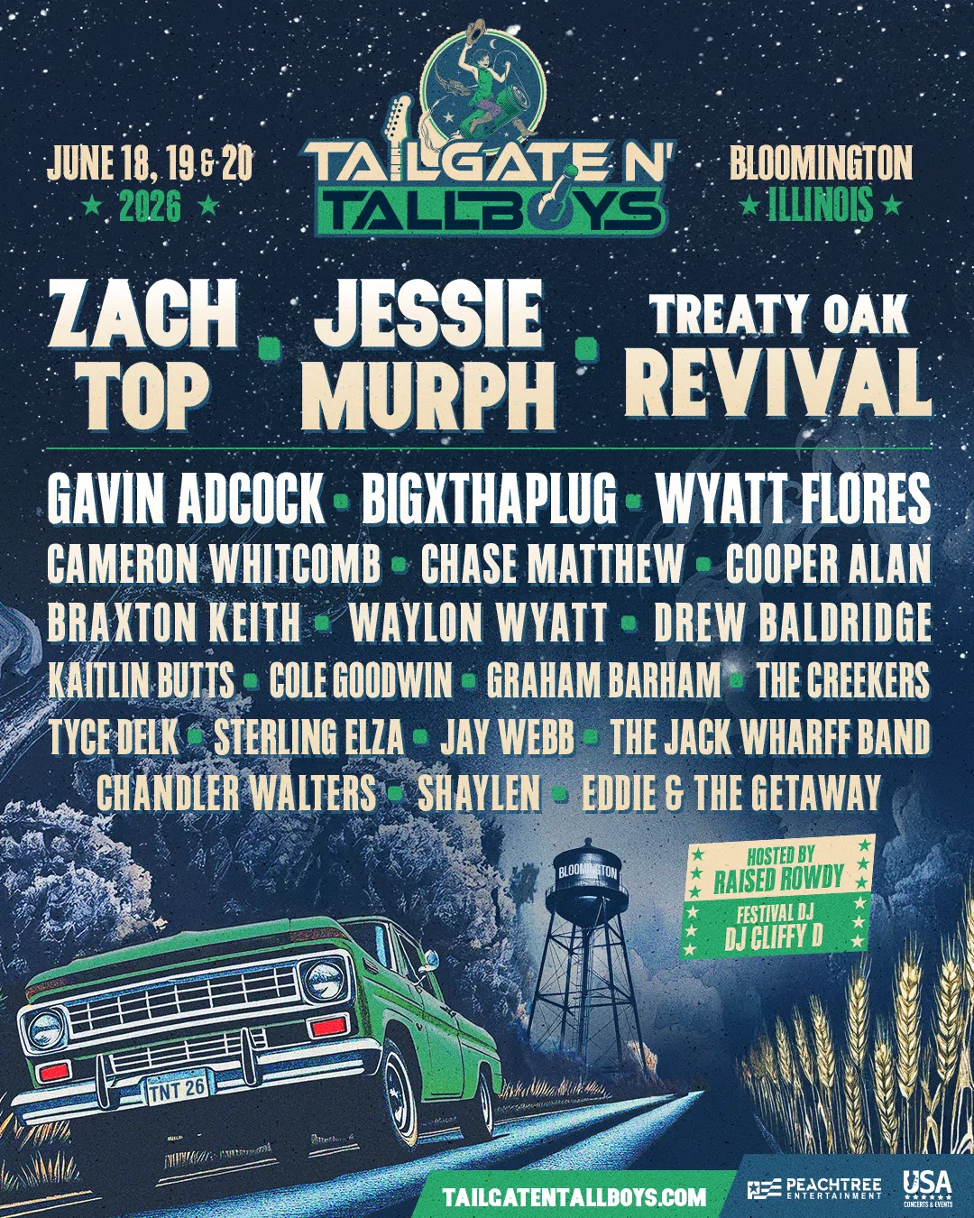 Tailgate N' Tallboys Announces 2026 Lineup for Bloomington, Illinois Including Zach Top, Jessie Murph, Treaty Oak Revival, Gavin Adcock, BIGXTHAPLUG, Wyatt Flores, Dylan Gossett & Many More BLOOMI...