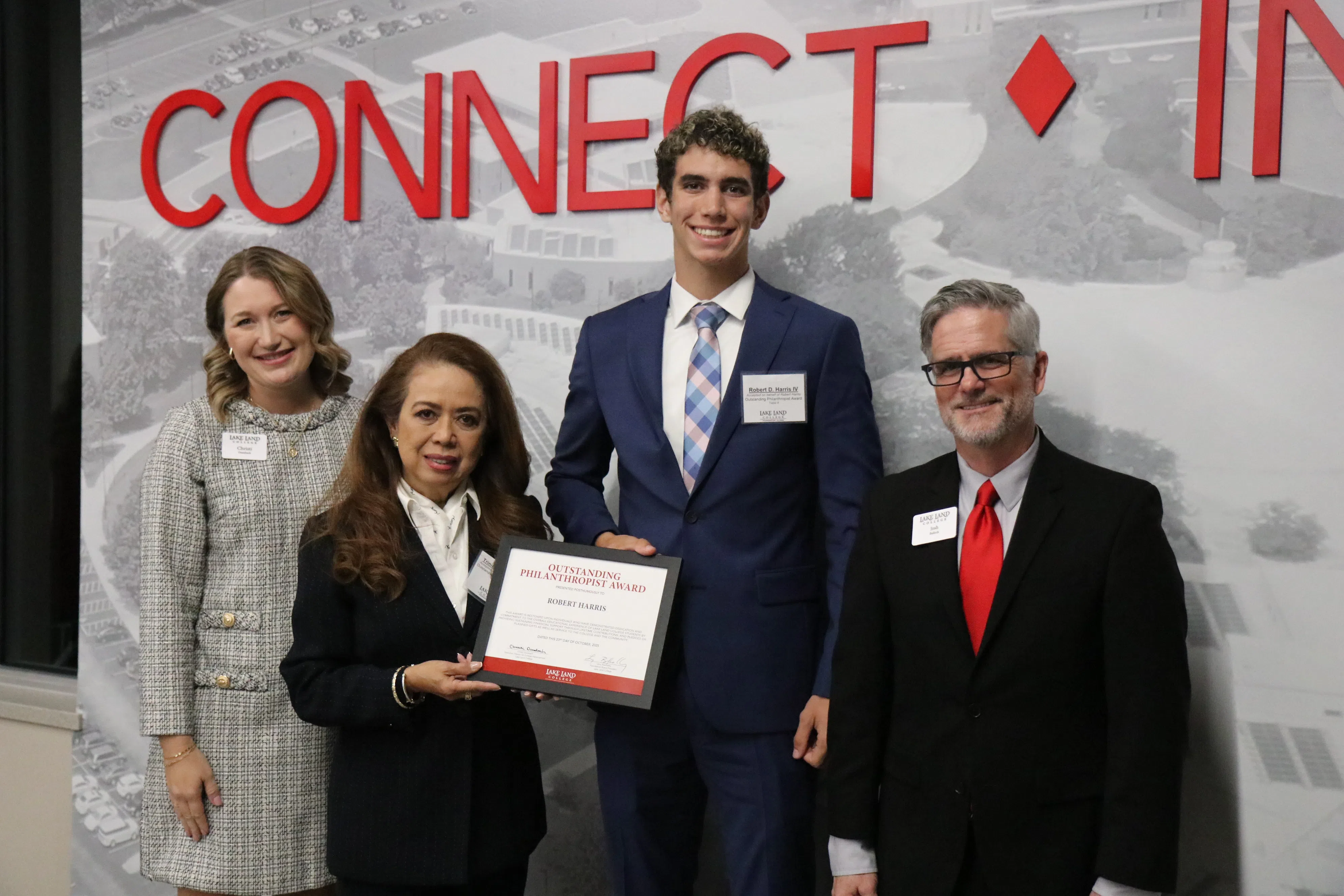 Pictured from left to right: Executive Director for College Advancement Christi Donsbach, Trinidad Stellmacher, Robert D. Harris IV and Lake Land College President Josh Bullock.