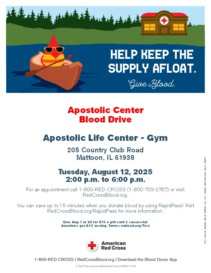 The heat is on to find blood donors! Come to give Aug. 1-28 and get a $15 e-gift card to a merchant of choice. Plus, the Red Cross will perform free A1C testing, commonly used to screen for prediabetes and diabetes, on successful donations in August (one result per donor in a 12-month period). See rcblood.org/Test for details.
