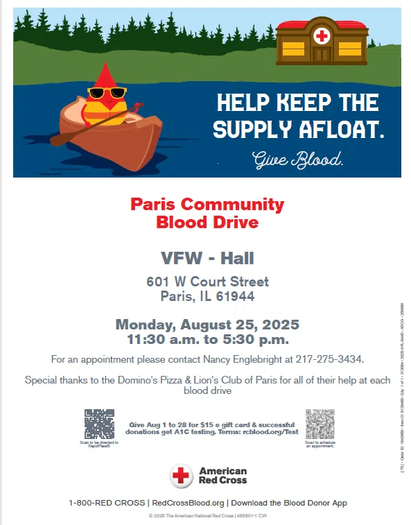 The heat is on to find blood donors! Come to give Aug. 1-28 and get a $15 e-gift card to a merchant of choice. Plus, the Red Cross will perform free A1C testing, commonly used to screen for prediabetes and diabetes, on successful donations in August (one result per donor in a 12-month period). See rcblood.org/Test for details.