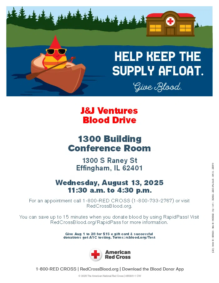 The heat is on to find blood donors! Come to give Aug. 1-28 and get a $15 e-gift card to a merchant of choice. Plus, the Red Cross will perform free A1C testing, commonly used to screen for prediabetes and diabetes, on successful donations in August (one result per donor in a 12-month period). See rcblood.org/Test for details.
